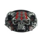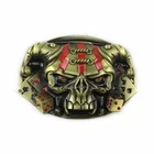 Add some edgy flair to your outfit with this cool Western belt buckle featuring a skull design. Made from high-quality zinc alloy and metal, this buckle is durable and stylish. The buckle fits a belt width of 1.5 inches and features a unique design with accents that make it stand out. Perfect for men and women, this buckle is ideal for those who love Western, USA, American, punk, cowboy, and retro themes. Whether you're heading to a concert or just want to make a statement, this buckle is sure to impress. Show off your love for skulls and all things metal with this stylish accessory.