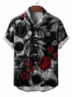 Skull Rose Print Casual Short Sleeve Hawaiian Shirt