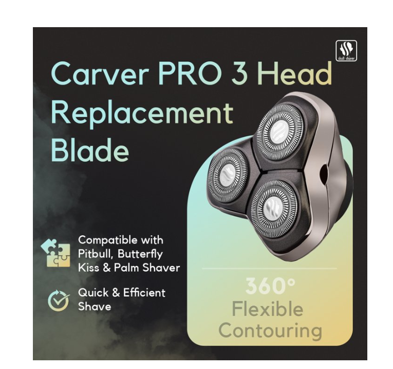 Product details Experience a faster, more comfortable shave with the Skull Shaver Carver PRO 3 Head Replacement Blades. Crafted from premium Japanese stainless steel, these blades offer exceptional contouring, superior performance, and a seamless shaving experience. Featuring a built-in vacuum system to capture hair and prevent mess, the Carver PRO blades are designed for a closer, irritation-free shave, whether you prefer wet or dry shaving. Compatible with all Pitbull, Palm, and Butterfly Kiss shavers, these versatile blades allow you to find the perfect fit for your grooming needs. : Choose from three styles of Skull Shaver PRO blades—Carver, Forte, and Baron—to find the perfect fit for your grooming needs. Whether you have coarse hair, sensitive skin, or prefer a specific cutting performance, there's a style designed just for you.