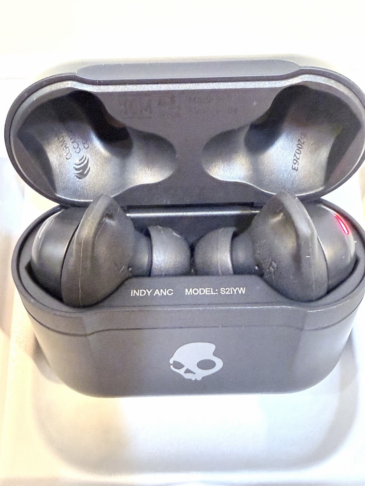 This is an open box item that I have taken extensive pictures of. I am not saying these are brand new, but I cannot find any evidence of these earbuds ever being worn. The case looks immaculate as do the earbuds themselves. Everything in the separate box also appears to be brand new. I did nothing to these earbuds prior to taking pictures of them. Personally I never would have purchased them if I felt they had been used because I definitely do not want to deal with any headaches with any product that I sell. I have purchased a lot of products in the past with “ugly boxes” that have had brand new products inside. So I will let you be the judge of them by looking at the pictures. This was just my opinion after looking closely at them. Hear music tailored to your ears via personal EQ. Stays secure during movement with 5 gel options. All-day listening with 32-hour total battery life. Top Tech - Indy ANC is the peak of the Indy family with everything from active noise cancelation, personal sound and our top tier driver. The audio quality from the Indy ANC is the amongst the best wireless earbuds with wicked treble and deep bass. Sick Noise Cancellation & Personal Sound - Be fully immersed in your tunes with active noise cancelation keeping out the outside noise outside… and hook up to the Skullcandy app and analyze your hearing to optimize sound levels just for you. Hours of Power -Whether you use the active noise cancelation or not you'll be using the Indy for hours, when the ANC is on you get of 19 hours battery, 5 in the buds and 14 in the case. When the ANC is off you'll get 9 hours in the buds and 23 in the case. Sick fit - big, small or medium sized ears the Indy is designed to stay, included in the box is 3 ear gels and 2 stability ear gels so your earbuds stick in your ears while you're on the move. Note: If you face issue in Bluetooth connectivity please turn off the Bluetooth function for a couple of minutes, then turn it back on.