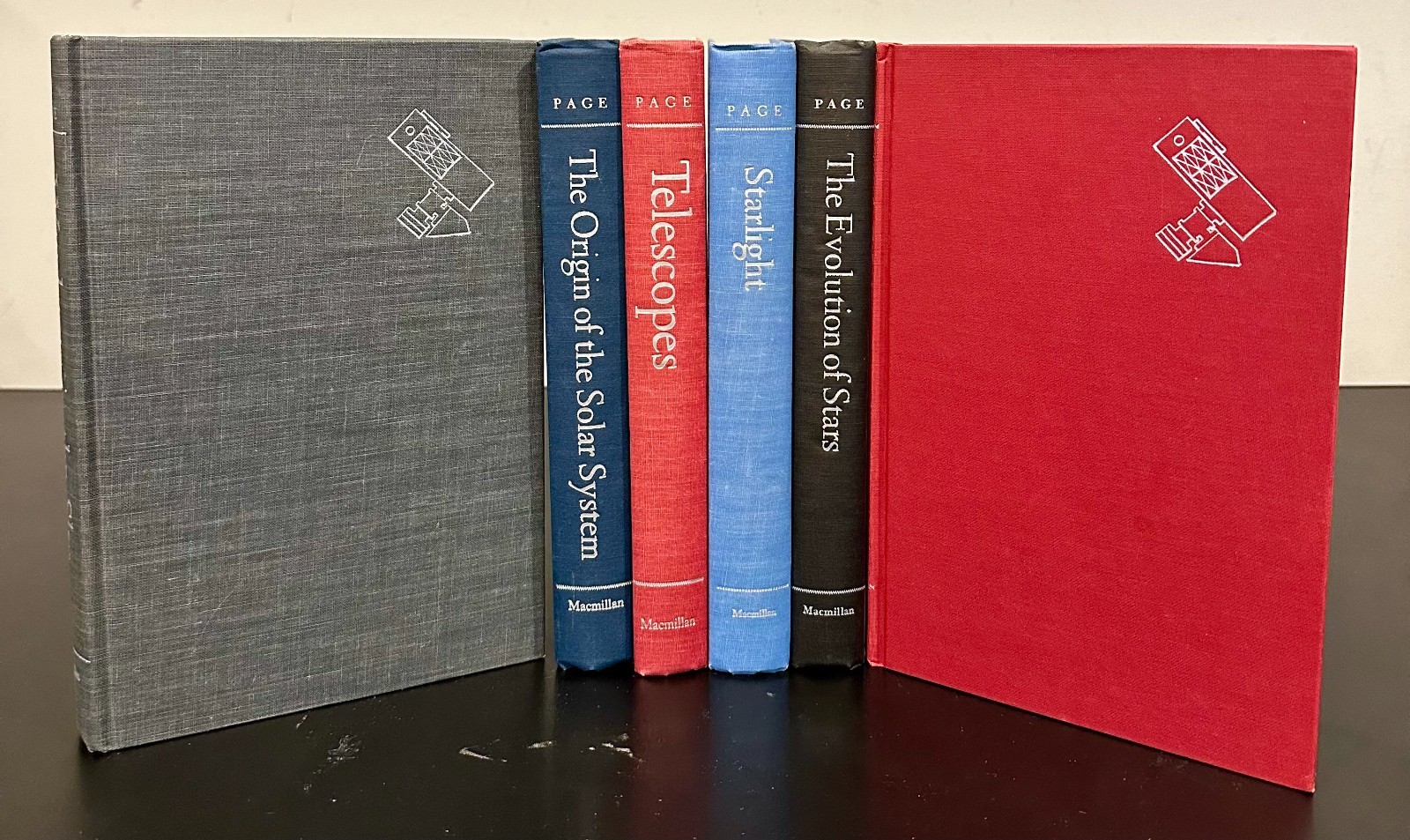 Sky and Telescope Library of Astronomy 6 Book Lot by Thornton Page & Lou Williams Page. Titles Include - Volume 1: Wanderers in the Sky: The Motions of Planets and Space Probes / Volume 3: The Origin of the Solar System: Genesis of the Sun and Planets, and Life on Other Worlds / Volume 4: Telescopes: How to Make Them and Use Them / Volume 5: Starlight: What it Tells About the Stars / Volume 6: The Evolution of Stars: How They Form, Age, and Die / Volume 8: Beyond the Milky Way: Galaxies, Quasars, and The New Cosmology. Ships free via USPS Media Mail.