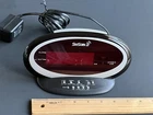 This SkySkan Atomic LED Alarm Clock Model 30724/30731 is a perfect addition to your bedroom. It features a contemporary style with a black finish and an oval shape. The clock is powered by either batteries or electric power, making it convenient to use anywhere in the room. With a digital display, this alarm clock is easy to read and set. It also comes with an alarm feature, ensuring that you wake up on time. The clock is made of plastic and weighs between 1-10 lbs. It is a standard alarm clock and belongs to the Equity Ind. product line. The clock is suitable for teens, adults, and kids and is ideal for any bedroom. Gently used. Tested. Adjust the time after plug in & wait for atomic signal yo be gone. It has 6 ft. Long wire. Here is reviews. Excellent Reviewed in the United States on March 31, 2004 I've had the 30731 for about a week and am, thus far, very pleased. When I began shopping for a new alarm clock, my primary selection criterion was that it have an LED display. Many new clocks have multifunction LCD displays which are nice except that you can't see them in the dark without pressing a button to illuminate them like an LCD wristwatch. Alternatively, some of these LCD clocks have projector attachments that shine a time display on the wall or ceiling, but you can't see them in a well-lit room! An LED display is visible under all ambient lighting conditions and seemed to me the most logical and straightforward solution. Once the universe of clocks is narrowed to LED models, the next consideration is the size of the LED digits. They run anywhere from approximately 1/2 inch to 1 inch. I'm very nearsighted, so to be able to see the time in the middle of the night without my glasses, is purely a case of "the bigger the better". The 30731 has digits that are .9 inches high - bigger than most other LED clocks and easily readable sans glasses at 4AM. Obviously, the larger the display, the larger the clock, but I have lots of room on my nightstand and was not concerned with the 30731's somewhat larger than usual size (about 8.5"W, 3"D, 4"H). At this point, additional useful features are the only other necessary evaluation. The 30731 has the ability to set itself by receiving a radio signal from the US National Institute of Standards and Technology (NIST) located in Colorado (Do a Google search for WWVB and you'll find them - lots of useful info). You set your timezone and whether you use Daylight Savings Time and the clock does the rest. I can report that from my location in NY, this works perfectly but you should know 2 things. First, I have found that the clock must be facing East-West (i.e. facing Colorado from NY) for the auto-setting to work. If your bedroom is laid out such that your clock will not be facing in the general direction of Colorado, you might have a problem. (Actually, I think if it faces directly *away* from Colorado, that's OK too. As long as its not "end-on" to Colorado.) Furthermore, as the instructions point out, time signal reception is best in the wee hours of the morning, and that is the only time that, for my location anyway, the clock is able to sucessfully set itself (but it has sucessfully reset itself every night). My only complaint, and it is a minor one, is that the snooze alarm bar, though large and easy to find, doesn't really depress like a button but sort of pivots front-to-back on a stiff spring and can cause a little fumbling when you're in a semi-conscious state. The alarm is an electronic "chirp". Loud enough to wake me but not so loud as to cause coronary arrest. The clock has battery backup for power failures if you put a 9V battery in it (not included). It does not have dual alarms or weekend settings. It does not display date, day of the week or seconds. You can see a better picture of the clock and get more info on it at the equitytime.com website. I have not experienced the dim or irregularly illuminated display reported by the reviewer from Redmond. I find it amply bright with all LED segments uniformly lit. I am quite happy with this alarm clock and can recommend it without reservation.