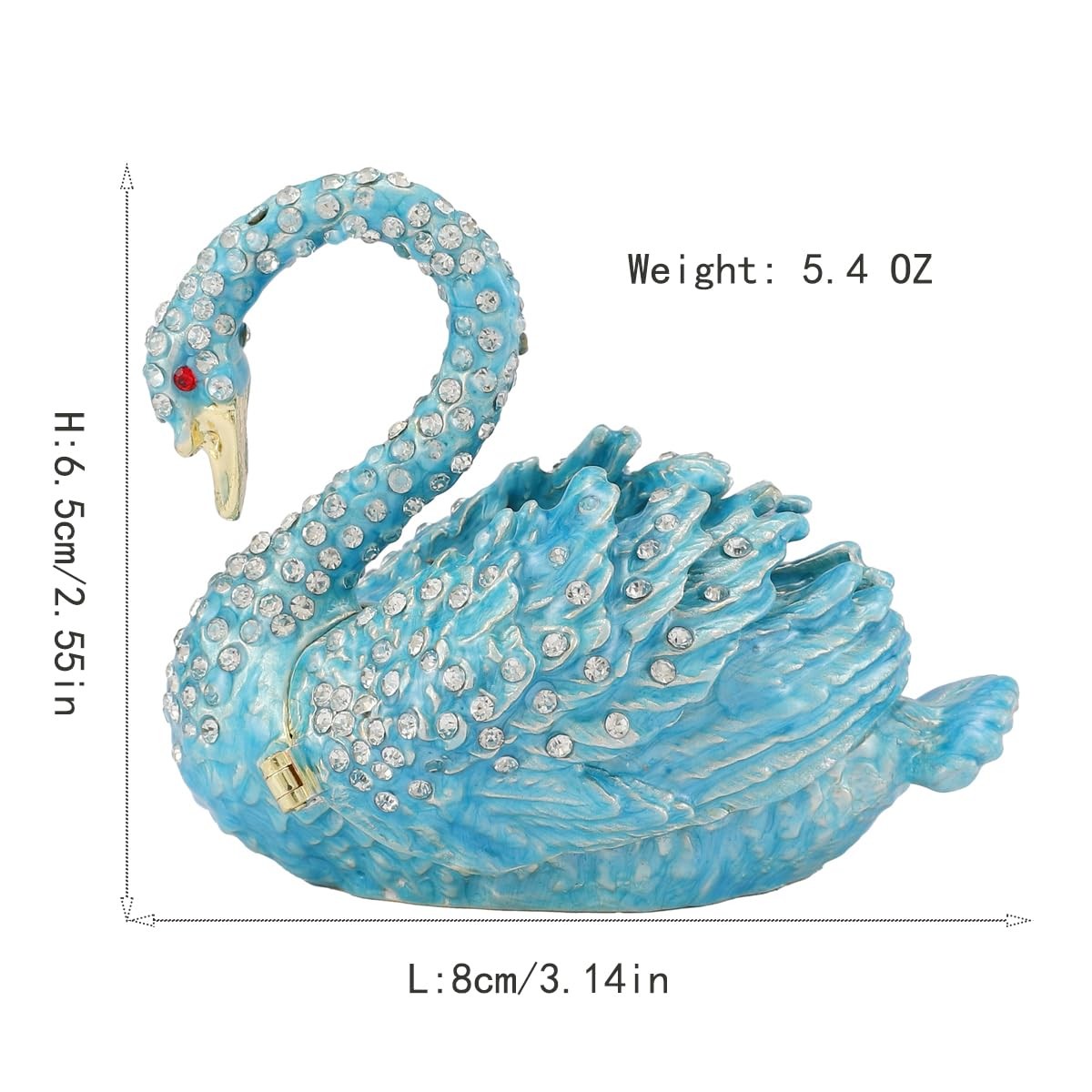 Size: Exquisite swan trinkets size about 3.14*1.77*2.55 inch(L*W*H)/Weight: 5.4 OZ. Proper size swan is suitable for making small surprises. Material: Swan trinket box is made of zinc alloy,beauty rhinestones,and hinge design. it is good for decoration and collection. Storage Function: Opens swan trinket boxes hinge,you can also put little meaningful items such as ring,earring,folded money in and send together to your loved ones or swan lover,collector. Unique Gift: The elegant swan Figurines is packed well in golden gift box, as a symbol of faithful love, it's a perfect gift choice for friend, family on Easter,Graduate,Birthday,Mother's Day,Valentine's Day,Thanksgiving Day,Christmas,New Year,Theme Party and Housewarming Decoration. Service: If you have any issues with the swan trinket box,please feel free to contact us,we will try our best to help.