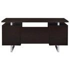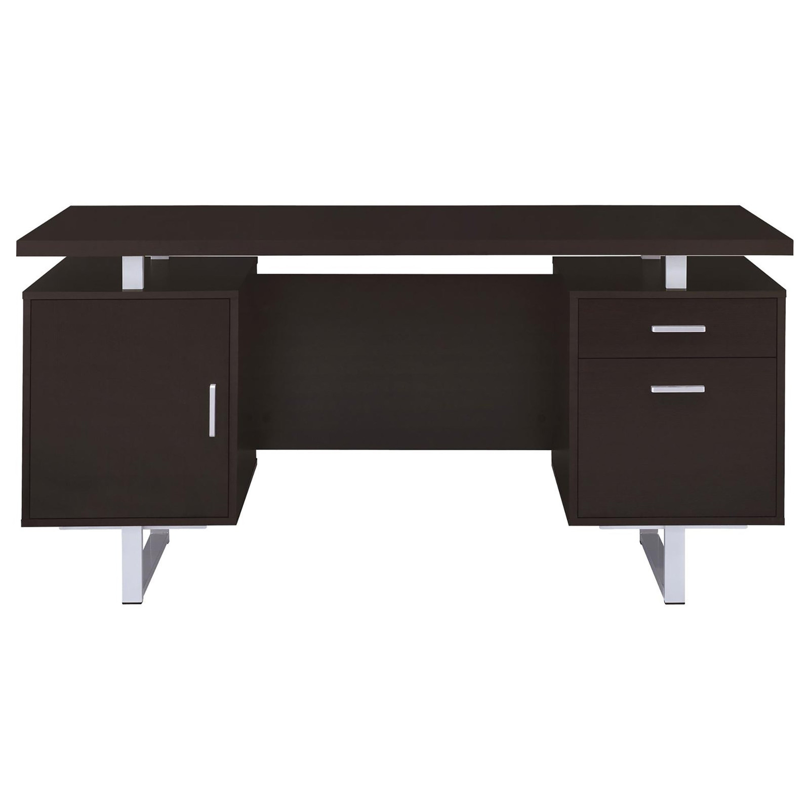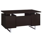 Specifications Place of Origin Taiwan, China Main Color Cappuccino Main Material Wood Product Style Contemporary,Modern Use Case Office Wood Tone Brown Desks Shape Triangular Desk Type Writting Desk Storage Type Drawers Dangerous Goods #dangerFlag# Dimensions & Weights Assembled Length (in.) 60.00 Assembled Width (in.) 23.50 Assembled Height (in.) 30.00 Weight (lbs) 94.60 Product Features Featuring a floating top design, this desk offers an intriguing and visually captivating look, adding a unique dimension to the workspace Equipped with a cabinet, drawer, and file cabinet, providing ample storage space for essentials, papers, and documents, ensuring a clutter-free work area The use of contrasting silver hardware and steel legs enhances the desk's contemporary style Combining functionality with style, this desk offers both storage solutions and a visually appealing design Description Romance Copy A modern gem with retro-inspired design elements, this aged walnut finish office desk creates a functional and fashionable addition to home or business offices. Its quirky silhouette with a floating top joins plenty of storage features, including a cabinet, a drawer, and a file cabinet that accommodates both legal and letter size documents. Product Details Set includes One (1) office desk Dimensions
