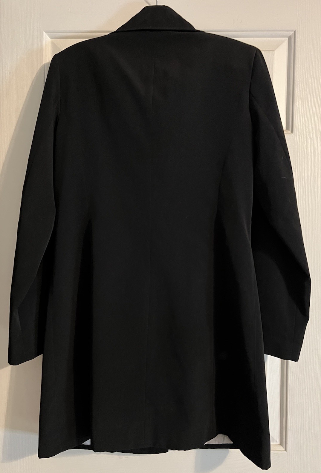 The Sleek Esprit Long Rain Trench Coat is a stylish and versatile outerwear piece perfect for the colder seasons. Made of polyester with a polyester lining, this coat features large buttons on the front and cuffs, adding a classic touch to the design. The long length and trench coat style make it a practical and fashionable choice for casual occasions. In a sleek black color and size M, this Esprit coat is a must-have for any woman's wardrobe. Easy to care for with machine washable instructions, this coat is ideal for winter, fall, and spring. Length 33” Shoulder Width 16” Sleeve L 25”