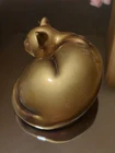 Sleeping Cat Figurine Paperweight Gold Tone Matte Finish Felt Bottom Apprx 5"