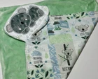 Super sweet baby lovey made by me! Sweet soft minky backing with a high quality flannel paisley print on front. Cute little embroidered animal all in minky. This measures approximately 18”x18”. Meant to be used for comfort or security.
