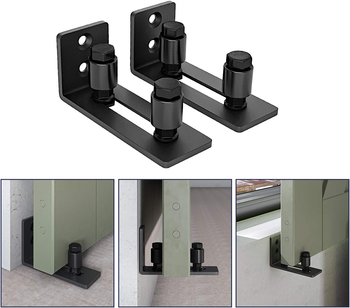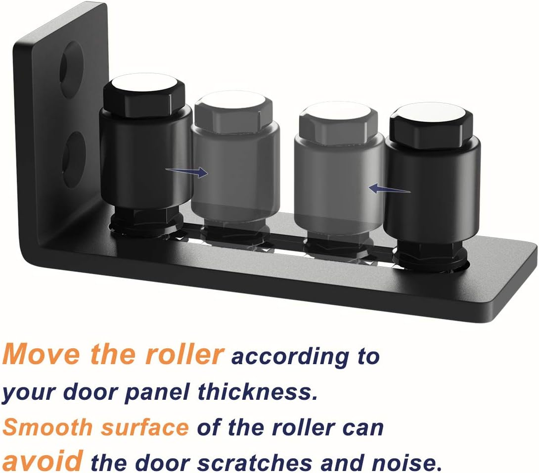 Brand: SMARTSTANDARD; Condition: Brand New; Material: Solid Steel and POM NYLON; Surface: Frosted black; Fit door panel thickness: from 1 15/16” to 0; Size of roller: 14/5”(dia)* 4/5" (H) Package Include: 2x floor guide; 4x screws; All necessary hardware is included as you see in the pictures. Easy To Install: Mount to the wall with screws, and no groove required for door. By adjusting the rollers in the track to fit your door panel. No need to drill holes in the floor. Adjustable: Adjust range from 1 15/16” to 0. Adjust the two rollers to fit the door panel and then tighten the screw in the bottom of the floor guide so that the rollers will be fixed in the workable position. 24 hours online customer service: We provide 24-hours online customer service to help you to solve the problem more efficiently. Product Description Flat Bottom Design Flush Mount Construction The embedded design makes the floor guide more stable, which protects your door better. Adjustable Roller The roller could be moved according to your door panel thickness: From 0 to 1 15/16”. Smooth Surface Manufactured with solid steel and POM nylon. Smooth surface is also coated with a protective agent, which ensures anti-corrosion and years of longevity. Protects doors from scratching and ensure smooth sliding. Easy installation Easy to finish the installation and the design of the countersunk hole could protect the screws or bolts. All the necessary parts and wrench tools are ready for you to help you install more efficiently(not include the screwdriver). Suitable for different places Floor Wall Window or Television
