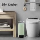 Perfect for Small Spaces: The trash can is slim enough to place in any narrow space or corners. No longer have to worry about the narrow space in the room being wasted. Get it now to improve the space utilization! Nice Soft Close & Stay-Open: The lid opens and closes smoothly and silently with no annoying noises, no longer have to worry about disturbing the rest of your family. Push the lid at 90° to stay open as long as you need Odor Control & Pet Proof: The lid fits snugly around the mouth of the trash can, saying goodbye to those dirty and unpleasant smells. The design of the lid also can effectively prevent your pets from getting into it and messing up your room Durable Step Pedal: The foot pedal creatively combines stainless steel tread with plastic material, making a lighter and more comfortable pedaling sensation. Allowing you to step more than 20 steps a day for 20 years, engineered up to 150,000 steps Removable Inner Bucket: The inner bucket of the small trash bin can be easily removed to clean or waste disposal. The hole designed inside the bucket helps lock the garbage bag in place and hide extra trash bag