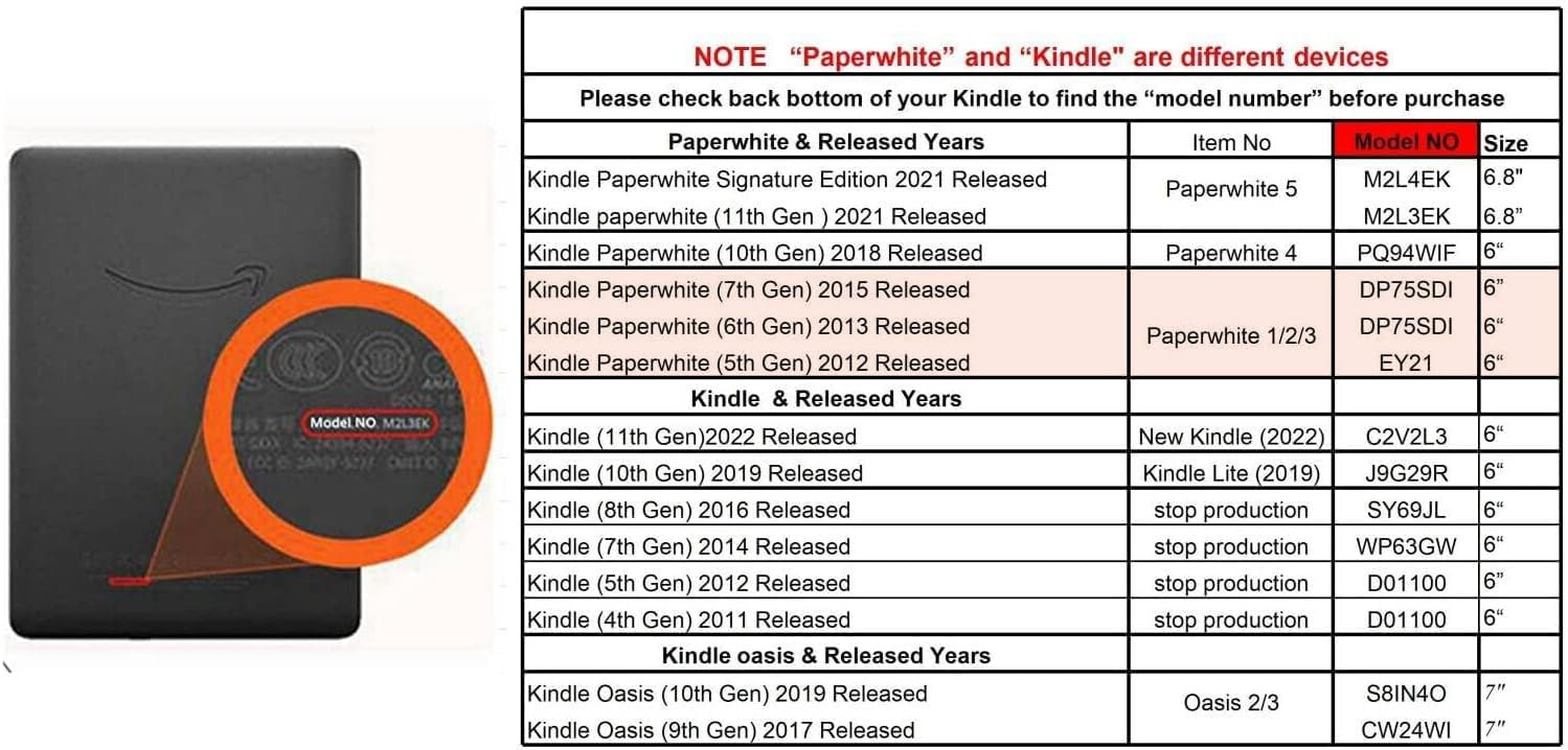 Clear Case for 6" Kindle Paperwhite (Model: DP75SDI / EY21) 7th/6th/5th Product Details Package Dimensions: 7.99 x 5 x 0.51 inches Item Weight: 1.76 ounces Special features: Flexible, DIY with Stickers Back Cover, Lightweight, Anti-Fingerprint, Shockproof Form Factor: Cover Color: Clear Whats in the box: 1 clear case for 6" Kindle Paperwhite 5th/6th/7th Gen Manufacturer: KEEXYICC Brand: KEEXYICC Compatible Devices: E-Readers Shell Type: Soft Perfect Fit: This KEEXYICC transparent tpu back cover specially compatible with 6" Kindle Paperwhite 7th/6th/5th Generation - 2015/2013/2012 Release. Model: DP75SDI or EY21. DIY Clear Case: Our case not only provides maximum protection, but also could DIY the back with popular or loved stickers/ photos. Putting stickers in between the device and the case (instead of sticking them directly on the case). Bumper Corners: Special design of bumpers on the corners. The reinforced corners that protect the front and back from being scratched when set down on a flat surface. Ultra Thin Design: Made of Soft TPU, flexible, lightweight and thin slim. It fits like a glove. Ease of Use and easy to clean. Precise Cutouts: The openings line up perfectly, so function is not compromised. Easy to slip into my purse for travel. Great Choice: Very simple and clear cover. Easy to grip with your bare hands. It offer DIY time with your family and friends. It could as a good companion for your friends. Attention!!! The transparent tpu case specially compatible with 6" Kindle Paperwhite 7th/6th/5th Generation - 2015/2013/2012 Release. Model: DP75SDI or EY21. Will not fit prior other kindle models, Please check your tablet model number before buying. - Simple snap-on installation process. - Protects your tablet device without making it feel heavy. Not bulky but protective. - Sturdy and light weight. It’s easy to put on and take off. - More comfortable to hold. Fits perfectly, look good, functions great. - The clear case fits perfectly, feels good, and allows you to see the color of 6" Kindle Paperwhite while still protecting it. DIY with favorite stickers. - Places stickers inside to have lots of color come through. Just placed them and didn’t stick to cover so you can change them in the future !