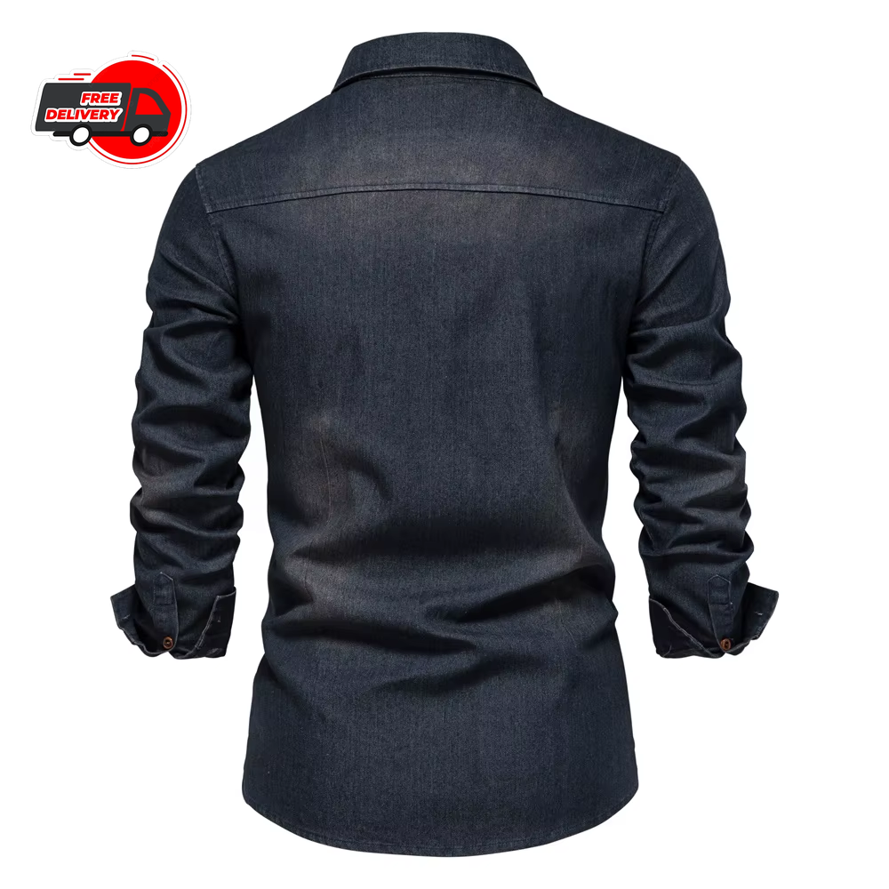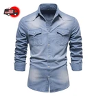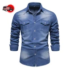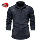 Slim Fit Casual Shirt Elastic Cotton Denim Shirt Men Long Sleeve Cowboy Shirts