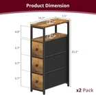 Narrow Night Stand Set 2 - Skinny Nightstands with Drawers Slim Bedsides Tables About this item 3 Fabric Storage Drawers: Effortlessly grab magazines and snacks whenever you need 7" Narrower Width: 15.7"D x 7.1"W x 25.2"H, contain 2 slim side table which no space wasted, even in tight areas Sturdy Support: 40lb load capacity for sturdy, everyday room storage that lasts Farmhouse Vibe: Medium Density Fiberboard, transform a small room into an orderly space with thin side tables Easy Assembly: Set up in minutes with clear instructions and all the hardware included Specifications Item Dimensions D x W x H 15.7"D x 7.1"W x 25.2"H Item Weight 8.2 Pounds Size 15.7"D x 7.1"W x 25.2"H Tabletop Thickness 0.5 Inches Extended Length 15.7 Inches Item Width 7.1 Inches Shipping Tracking number: Available We use a selection of shipping services such as UPS, FedEx, USPS etc. We only ship to the lower 48 states, no APO/FPO addresses or PO Boxes allowed. Local pickups and combined shipping options are not provided at this time. Tracking number: Available We use a selection of shipping services such as UPS, FedEx, USPS etc. We only ship to the lower 48 states, no APO/FPO addresses or PO Boxes allowed. Local pickups and combined shipping options are not provided at this time. Contact us We can be contacted at any time through eBay messages if you have any questions, comments or product requests. We will respond to you within 24 hours and do our best to help you out! We encourage our customers to contact us with any questions or concerns! We'd like to be sure you are completely satisfied with your purchase.