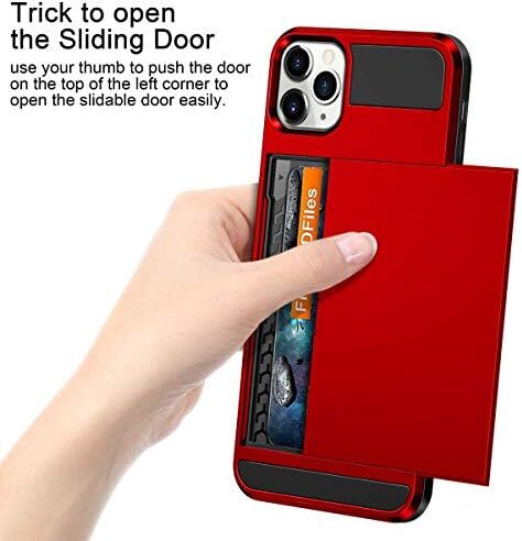 Case for iPhone 11 Pro Case Wallet Credit Card Holder Slot Sliding Door Hidden Pocket Anti-Scratch Dual Layer Hybrid TPU Protective Hard Shell Back Cover for iPhone 11 Pro 5.8 inch Black Wallet Case for iPhone 11 Pro (5.8in screen, 2019), carry 2 essential cards for daily convenience,Case is design to hold 2 ID-size cards like credit cards, driver license, metro cards, etc.,The cards or folded bills are hidden and not easy to be noticed, very safe and convenient,Compatible with wireless charger if you take cards out of the case before charging,Case are made of rugged TPU inside to absorb impacts, scratch resistant PC outside for more protection and sleek looking.