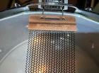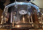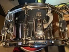 Hey Siri, a fantastic example of a 14 inch diameter 6 1/2 inch depth Slingerland chrome over brass spitfire 12 lug share. The side from the Drum missing its muffler It is in excellent condition all around. This Drum has brand new Remo heads and brand new puresound snare wires. This is the 70s Drum and aside from some micro scratches from polishing it’s really unscathed. There is no major pitting or dents or damages it all of any kind. Feel free to ask any questions you might have. Thank you for looking