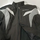 Slingshot Men's Driver Jacket Black/Gray Polaris Size 2XL Black and grey Polaris Slingshot jacket, designed for outdoor activities and especially suited for riding or driving the Polaris Slingshot vehicle. Color and Design: The jacket is primarily black with prominent grey and white panels and accents, featuring a modern and dynamic aesthetic. Material: It is made from materials like polyester and spandex with some versions featuring a bonded fleece lining for warmth and weather resistance, such as wind and water repellency. Functionality: Designed as a softshell or windbreaker type jacket, it includes features like a full-zip closure, and zippered pockets. It has a two-way zipper or a double zipper that allows you to open the jacket from both the top and the bottom simultaneously, providing more flexibility and ventilation. The jacket prominently displays the "Slingshot" logo, on the chest and back, indicating its association with the Polaris Slingshot brand. Versatility: While tailored for Slingshot enthusiasts, its wind-resistant and potentially water-repellent qualities make it suitable for various outdoor activities beyond riding, such as hiking or casual wear in mild temperatures. Measurements Pit to pit: 24inches Chest: 48 inches Length: 30 inches Sleeve length: 26.5 inches