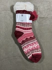 Slipper Socks Adult 6-10 Red Print Winter Recycled Polyester Gyal Bashy Soft NWT