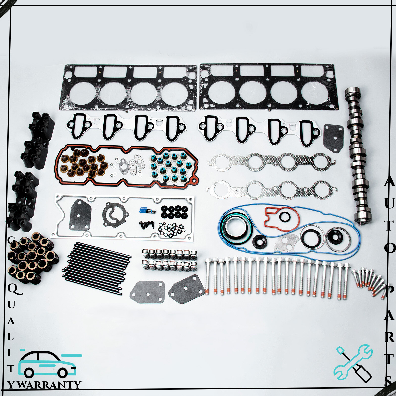 Sloppy Stage 2 Set w/ Gasket Lifters Pushrods Cam Kit E1840P For Chevy LS LS1 US Head Gasket Bolts Set Fit 04-14 Cadillac Chevrolet GMC Buick 4.8 & 5.3 OHV. The head gasket is the key component of the engine. It is compressed between the engine block and the cylinder head. The head gasket seals in the internal combustion process to make sure maximum compression is achieved and also keeps coolant and oil from mixing together as the two fluids travel from the engine block to the cylinder head. Time will come that your head gasket will leak or blow. The cylinder head bolts hold the cylinder head and cylinder head gasket in place and ensure that the cylinder head will continue to hold up despite the tremendous amounts of pressure in the combustion chamber. Therefore the cylinder head bolts, and cylinder head gasket are an important part of your engine. They should always be in perfect condition and should be maintained properly. So, if you notice that this part is showing signs of excessive wear, have them replaced immediately. Be sure to have your engine gaskets, and head bolts replace with aftermarket replacement head gasket bolts set as soon as it starts to give you trouble. Remark: The valley pan gasket in this does NOT fit on engines with Active Fuel Management (A.F.M.) system. These engines have two different designs for the head bolts. 1st design head bolts have 16 Long Bolts: 150mm, 4 Short Bolts: 100mm, 10 Small Bolts: 45mm. 2nd design head bolts have 20 Long Bolts: 100mm, 10 Small Bolts: 45mm. This kit ONLY FITS engine with 2ND DESIGN HEAD BOLTS (20 long bolts: 100mm, 10 small bolts: 46mm). Please double check your engine head bolts to make sure this kit will fit your engine before making the purchase. Fitment: Fit for LS1, LS2, LS3, LS6, LS7, LS9 LSX Engines For 1999-2002 Camaro and Firebird For 2010-2013 Camaro For 1999-2013 Corvette For 2004-2006 Pontiac GTO For 2004-2007 Cadillac CTS-V For 2008-2009 Pontiac G8 For 2000-2013 Tahoe, Yukon, Escalade For 2003-2009 H2 Hummer For 1999-2013 Silverado and Sierra (4.8L, 5.3L, 6.0L) NOTE: T his is a 3-bolt cam (Gen III LS), if you have a single bolt cam (Gen IV LS) you will need to purchase 3-bolt cam gear conversion kit.Not compatible with Active Fuel Management (AFM). Custom computer tuning required.These are .560" Lift Beehive Valve Springs!! Feature: Camshaft Type: Hydraulic Roller RPM Range: 2200 to 5400 RPM Intake Valve Lift: .585" Exhaust Valve Lift: .585" Advertised Intake Duration: 283° Advertised Exhaust Duration: 286° Intake Duration @ .050": 228° Exhaust Duration @ .050": 230° Lobe Separation: 112° Intake Centerline: 108° Cam Gear Attachment: 3-Bolt .560"Springs Set: 100 lbs @ 1.800" 285 lbs @ 1.240" Coil Bind @ 1.150” 560" Max Lift Beehive design Works with stock retainers & locks Valve Lifter Set: 16pcs HL-124 Valve Lifters Chevy LS Pushrods 7.400" 5/16" Set Quantity:16PCS Engine:4.8, 5.3, 6.0, LQ4,LQ9 Diameter:5/16" Material:4130 Structural Steel Overall Length:7.400" Notes: Not for use with AFM/DOD Package Included: Cam Camshaft For Chevy x1 Bee Hive Valve Springs x16 valve seals x16 Pushrods x16 M295HV Oil Pump x1 Balancer Bolt x1 Balancer Bolt x1 Guides x4 Lifters x16 Bolts x4 Filter x1 Multiple Layers Steel (MLS) Head Gasket Valve Cover Gasket Valve Stem Seals Intake Manifold Gasket Metal Upgraded) Exhaust Manifold Gasket Front Camshaft Seal O-rings Other Small Gaskets 30 Cylinder Head Bolts (20 Long Bolts: 100mm, 10 Small Bolts: 45mm) Notice: If you have any problems, please feel free to contact us befor case or return.