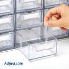 Multipurpose Drawer Cabinet - Elevate your organization with this sleek and modern Korean-made parts organizer. This stackable cabinet features adjustable dividers, transparent compartments, and easy labeling, making it ideal for various uses such as arts and crafts storage, bead storage, office supplies, and organizing plastic bricks. Stackable for Space Optimization - Maximize your storage space by stacking multiple units of this organizer. Keep your essentials neatly organized, easily accessible, and in clear view, optimizing vertical space in your workspace or home. Customizable Compartments - Effortlessly tailor each drawer to your storage needs with built-in slots for adjustable dividers. Create compartments that perfectly separate colors, sizes, and parts for efficient organization and quick access. Convenient Labeling - Simplify your storage system with customizable labels on each drawer front. Quickly identify contents at a glance, streamlining organization for nail stylists, collectors, crafters, and meticulous organizers. Size - Dimensions of the 20 drawer organizer storage unit: Overall Unit: [ H11 x D7 x W14.3 inches] Each Drawer: [H1.9 x D6.8 x W3.2 inches].