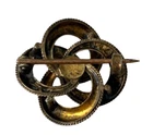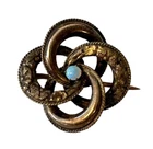 Lovely Small Antique Victorian Brooch 4 Gold (unknown metal purity) Interlocking Circles (2 have a floral pattern, 2 are plain with a braided edge) Center Prong Set Opal Approximately 1" x 1" Good Antique Condition