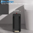 Embossed Metal Surface - Crafted from thick, premium stainless steel, this small bathroom trash can features a truly embossed stripe design that exudes a vintage and elegant charm. Every time you step into your bathroom or kitchen, it's an eye-catcher. Plus, are there accidental stains? Just a gentle swipe of a wet cloth, leaving it looking brand new. No-Hands Pedal- No more touching trash cans with your hands! Our ergonomic pedal ensures durability and comfort. We put the Pedal test of these garbage bins through over 7000 times during the upgrade, and they passed with flying colors, boasting impressive non-slip, and comfortable performance. Odor Worries, Be Gone! - Fed up with unpleasant odors wafting from your kitchen trash can? Say hello to our odorless trash can with a lid and aroma . The odor control trash can with lid expertly seals in odors, while the aroma work wonders to neutralize those pesky trash smells. We include 10 scent pads for you, with 2 to be used at a time. Keep your living space fresh and clean! Effortless Operation - Embrace a trash can experience like no other. With a gentle press of the pedal, the lid opens and closes with a whisper, just as quiet as turning in a book. All thanks to our awesome Descent Control Device. What's more, you can push the lid to 90° to keep it wide open for as long as you need. Sleek Rectangular Shape - It's as slender as it gets, the slim trash can measuring 6.4 inches in width. Perfect for those tight spaces between your toilet and cabinet. This small garbage can measures 9.68 x 6.4 x 12.2 inches (L x W x H), the Ideal device for any corner or cranny in your bathroom, bedroom, and more! Say Goodbye to Bag Struggles - Our bathroom trash can boasts a removable inner bucket that streamlines disposal. It even features a retainer hole to securely hold your trash bag and discreetly hide away extra liners. Experience a cleaner, more convenient way to manage your trash.