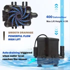 【Automatic Water Level Control】The integrated water level sensor ensures automatic operation, preventing water overflow and dry running, providing peace of mind and convenience. 【Small Size and Hight Lift】 Our small pump with water level sensor combines space-saving design with efficient liquid handling, perfect for tight spaces,such as air conditioner outer drainage, dehumidifier,air cooler ,HVAC condensate ,furnace and versatile applications. With the strong power motor,the pump is very easy to drain to 4.5 ft. 【Whisper-quiet Operation】Engineered with noise reduction technology, the mini pump operates quietly, providing a tranquil room while efficiently managing water levels. 【Compact and Space-Saving】 Designed to fit in tight spaces, making it ideal for installation in various HVAC setups. 【Quiet Operation】Operates quietly, ensuring minimal disruption to indoor room. 【Easy Installation and Use】 With simple installation steps and user-friendly controls, our small pump with water level sensor allows for hassle-free setup and operation by anyone. Product Description Automatic pump with level sensor Our small sump pump with water level sensor combines space-saving design with efficient liquid handling, perfect for tight spaces,such as air conditioner outer drainage, dehumidifier,air cooler ,HVAC condensate ,ice maker,furnace and versatile applications. Smart water level sensor The integrated water level sensor ensures automatic operation, preventing water overflow and dry running, providing peace of mind and convenience. Free you hand,enjoy your time. Large Bottom-Pumping Design From small aquariums and fountains to DIY projects ,fish tank,water-based crafts,and hydroponics our mini pump with a water level sensor adapts effortlessly to a wide range of applications. 4.5 FT High Lift And Large Volume This medium pumps water to a height of 4.5 ft, making it easy to pump water out of the window.Both sides with buckles,you can also use screws to make it more stable for the big machine. Flexible Tubing After the water pump stops draining for the first time,pay attention to observe whether all the water in the tubing flows back. (If the water in the tubing is flowed back, which means there is air in the tubing, and the water pump will be able to pump water normally after the air is exhausted.This progress would take about 1-2 minutes,don' worry, it's the normal condition.) Soak the twisted tubing in 50°C-60°℃ water, then it will get straight. For small power pumps, when installing the pipe, try not to bend it or make it too long.