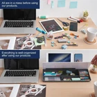 Brand TSJ OFFICE Color Grey Material Glass Recommended Uses For Product Office, School, Home Mounting Type Free Standing About this item PERFECT DESIGN: Maximize your work area. The desktop whiteboard is designed to sit perfectly between a keyboard and monitor and is slope angled for comfortable reading and writing, or typing when you are using it as a keyboard stand. SMOOTH WRITING & EASY TO WIPE: TSJ OFFICE mini desktop computer pad comes with a smooth and durable temple glass dry erase writing surface. This white board allows you to write and wipes clean with ease over and over. Our easel whiteboard always stays white and easy to read. HIDDEN STORAGE & PAD/MOBILE TRAY: De-clutter your desk by storing markers, magnetic eraser and other desktop accessories in the opening drawer or place markers on the accessory tray for quick access. And one more long tray on the top of the dry erase white board for your pad or mobile. Best gifts: A tabletop whiteboard, note taking supplies, desk to do list notepad, keyboard stand, desk organizer, memo board in Your Home, Office or Classroom! All ages would like this premium small white board. The clear desk pad brings them better organization, teaching and learning without paper large wasting. 100% SATISFACTION AFTER-SALES SERVICE - Your satisfaction and happiness are our top priority. Our hassle-free customer service team will work hard to resolve any issues that you have with our whiteboard. If you're not satisfied with your order, please contact with us, we promise to return your hard-earned money.