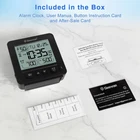 Stay organized and on time with the Portable Digital Alarm Clock, a compact and travel-friendly timekeeping solution. Designed for both home and travel use, this alarm clock measures just 3.5"x3.8"x0.98", making it easy to pack and carry wherever you go. Featuring RCC time synchronization, this clock automatically updates the time at 1:00 a.m., 2:00 a.m., 3:00 a.m., 4:00 a.m., and 5:00 a.m., ensuring precise timekeeping. Manual syncing is also available with a simple button press, making it reliable and versatile for different time zones. The dual alarm feature offers added convenience, allowing you to set two separate wake-up times to match your schedule or that of a partner. The Auto Light function provides a soft blue glow in the dark, ensuring nighttime visibility without disrupting your sleep. For quick checks in low light, simply press the top button to activate the 8-second backlight, giving you clear visibility of the time. Crafted for ease of use, this alarm clock runs on 2 AA batteries (not included), ensuring portability and flexibility in placement. Whether it’s on your bedside table or packed in your travel bag, the alarm clock delivers functionality and reliability. Key Features: Compact and lightweight design for easy portability RCC time synchronization for accurate and automatic updates Dual alarm settings for flexible scheduling Auto Light function and 8-second backlight for clear nighttime visibility Battery-powered operation (2 AA batteries required) [Reliable RCC Time Sync for Accurate Timekeeping] Automatically syncs with RCC signals at 1:00 a.m., 2:00 a.m., 3:00 a.m., 4:00 a.m., and 5:00 a.m. Ensure your time zone is set correctly for precise updates. Manual syncing is also available by holding the “down” button for 2 seconds [Dual Alarms for Flexible Scheduling] Set two different alarms to match your daily routines or multiple schedules. This feature is suitable for couples, families, or anyone who needs separate wake-up times, making mornings easier and more convenient [Auto Light Function for Nighttime Convenience] The "Auto Light" button activates a soft blue glow in the dark, providing clear visibility of the time without being too bright or disruptive during sleep [Compact & Travel-Friendly Design] With a size of just 3.5"x3.8"x0.98", this portable alarm clock is easy to pack and carry, making it a perfect travel companion or a space-saving solution for bedside tables [8-Second Backlight for Quick Visibility] A simple press of the top button activates the backlight, which stays on for 8 seconds, allowing you to check the time easily in dim or dark conditions