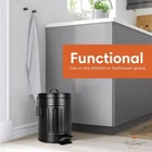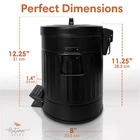Small Farmhouse Rustic Bathroom Trash Can Wastebasket 1.3 Gallon - Matte Black Condition: New Item - Includes original packaging but there may be light damage to packaging - Guaranteed to function perfectly and include all parts Description: About this item Durable, Well-design, and Functional Black Bathroom Garbage Can with Lid- Autumn Alley's farmhouse black trash can with lid and pedal is long-lasting and well-designed with strong metal construction, easy to clean, and keeps trash out of sight and mind. Autumn Alley bathroom trash adds a modern retro flair. Farmhouse Trash Can with Removable Bucket Liner - Taking out the garbage is clean and simple with this galvanized trash can with its removable inner bucket with a carrying handle. Ideal for farmhouse rustic bathroom accessories décor Push Foot Pedal - This black bathroom trash can has a hands-free mechanism that allows you to throw trash away without having to hold the lid open. Perfect retro wastebasket for your vintage bathroom. Farmhouse Bathroom Trash Can Décor - Our rustic trash can is easy to use and maintain, and it adds farmhouse rustic décor to areas like the bathroom, living room, office, and garden. State-of-the-art powder coating prevents rust in wet areas. Farmhouse Bathroom Accessories Set Collection - Consisting of a wide range of modern rustic home décor pieces, Autumn Alley aims to provide practical home-bathroom décor and kitchen décor solutions that are beautiful, affordable, and functional. Visit our online store from our large selection to complete the rustic farmhouse bathroom decor-inspired home of your dreams. Powered by SixBit's eCommerce Solution Powered by SixBit's eCommerce Solution