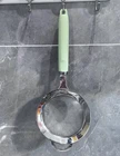 Fine mesh strainer is made from food-grade 18/8 stainless steel. Easy to clean, corrosion resistance and no rusting issues. The kitchen strainers keep food safe when straining. 40 Mesh Fine Sieve comes with 0.425 mm diameter holes. The metal strainer easily straining tiny residue. Reinforced rivets securely attach the thick steel sheet and mesh sieve securely; No handle falling off. Small top loop design makes the fine mesh sifter that can be placed over a pot or bowl. The stainless steel colander with thickened handle, comfortable to hold without burning your hand. Handle with U-shaped hanging hole design is convenient to hang up for easy access. Ideal for straining flour, sugars, pasta, flour, cocktails, wine, sugars, coffee, juice, tea, quinoa, washing rice, fruits or vegetable.