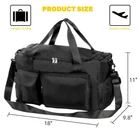 Durable and Waterproof: The gym bag is made of high-quality polyester fabric and nylon lining which are durable, waterproof, tear resistant and keep your belongings dry. Sturdy smooth zippers, exquisite workmanship and reinforced stitching at every key point ensures long-lasting use. Multi Pocket Design: These travel duffel bag includes 10 total compartments to plenty of items while keeping them neat and tidy. 1 main roomy compartment with 1 inner pocket, 2 front pockets, 2 side pockets,1 back zipper pocket, 1 back luggage sleeve and 1 removeable shoulder strap. Perfectly Sized: duffle bags measure about 18" L x 9.8" W x 11" H, which can hold a capacity of 37L. Enough space for clothing for a short trip. An ideal overnight weekend boarding bag for business or personal travel. Can be folded when not in use. 2 IN 1 Multipurpose Bag: Our lightweight gym bags can be carried in different ways, with comfortable hand grips and an extra over the shoulder strap if needed. It could be served for various sports such as tennis, dance, golf, football, basketball, swimming, etc. Dry Wet Separated Gym Bag: The black travel bag can help you separate dry and wet items, you can put your wet towels or dirty clothes into front pockets. The individual shoe compartment is ideal for keeping your shoes and will not stain rest of your belongings.
