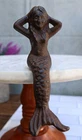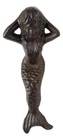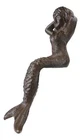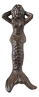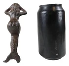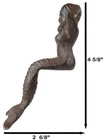 • This Beautiful Mermaid Shelf Sitter sculpture measures 4.5" tall, 2.25" wide and 2.75" deep approximately. The mermaid's bottom that sits on the edge is 1.25" deep. She weighs about 9 ounces. • This Beautiful Mermaid Shelf Sitter sculpture is made of cast iron, hand painted and polished individually with rustic aged bronze finish. Color tone may vary slightly from pictures. • Splashing with artful style, this charming mermaid shelf sitter is ready to swim and perch atop any table. Crafted from cast iron, this figurine showcases a sitting mermaid design for playful oceanic flair while the carved scales and body details provide subtle texture and dimension to the look. The neutral rust hue exudes provides earthy appeal and gives a nod to a boathouse style. • Props in photos are not included with the item.