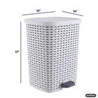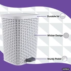 Give your office, bathroom or kitchen a new stylish look with this basket-weave designed compact trash can. Comes with a strong foot-pedal that opens it easy with a step of your foot. It is made with a separate interior can which smoothly slides out for easy wash and use. It's also available in smaller sizes. Decorative and functional - Step up to a step-on trash can that's both functional and decorative! This attractive collection of wicker patterned step-on trash cans will give you a fresh new look in your kitchen, bedroom, office, or bathroom. It is also available in other colors.