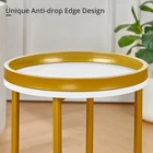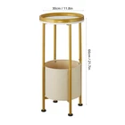 Small Round Side Table with Storage Basket, 2-Tier Round End Table for Living Room & Bedroom, 26" Tall Nightstand Modern Sofa End Table for Small Spaces 【Chic 2-in-1 Design with Storage】This table masterfully blends gold and white style with function. The elegant white wood-grain top and gold metal frame add a modern look, while the spacious linen fabric storage basket beneath instantly declutters your space. Use the basket to hide blankets, magazines, or remote controls, or even as a cozy pet cave bed for a small cat or dog 【Perfect Space-Saving Solution】Measuring just 11.8"D x 26"H, this compact small round side table is designed for apartments, dorms, and cozy corners. Its vertical, multi-tier design maximizes storage without taking up valuable floor space, making it a highly practical nightstand or sofa end table 【Built to Last & Exceptionally Stable】Constructed with a high-quality, durable metal frame and thick MDF board, this small table is built tough for everyday use. The clever design includes adjustable feet pads to protect your floors and ensure the table remains perfectly steady and wobble-, even on uneven surfaces. The rounded shape also makes it safe for homes with children and furry friends 【Ultimate Multi-Functional Table】This is the ultimate multi-tasker small side table for any room. Use it as a traditional bedside table in the bedroom, a chic plant stand in the entryway, a handy drink or snack table next to the sofa, or a dedicated laptop workstation. Its versatile style and storage capacity meet a wide range of home needs 【Fast 10-Minute Assembly】Stop struggling with confusing instructions. With pre-reserved holes, uniform parts, and clear instructions, you can fully assemble this stylish end table in just 10 minutes the provided tools. Plus, the simple, smooth surface is easy to wipe clean, offering a hassle-and long-lasting piece of furniture