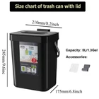 ✅【High Quality】: kitchen trash can with lid is made up with high quality plastic. The sturdy handle makes it easy to carry the filled bin. Perfect for everyday counter-top use.Indoor compost bin with lid designed specifically as a hidden non smelling fruit fly free. Super easy access for load and unload. ✅【Two installation methods】: Provide two installation methods: door hanging with over-the-door-hook ,wall-mounted with adhesive hooks.Can be hung over your kitchen cabinet door to manage scraps efficiently, easy to slide scraps directly into trash can. Can be attached to the wall or cabinet doors drawers.Can stand on the floor when needed. ✅【Wide Application】 : This trash can can be perfectly hung on your cabinet door, Drawer, Bedroom, Dorm Room door, car etc.There is a fixed bracket at the bottom of the trash can, you can also put it on the ground if you want. Widely used in Kitchen, Home, Room,Office, Bathroom, Bedroom, Car, Indoor, Outdoor, Garden, Yard, Camping and anywhere it is needed. ✅【Compact Kitchen Trash Can】Trash bin is easy to install hanging, mount accessory ( 1 hook, 1 adhesive hooks ) included.1.3 Gallons / 5 Liter. 8.3 inch*6.8 inch*9.6 inch. The trash can doesn't take up too much countertop space. Fits on a countertop, under the sink, or in the pantry, and works well for small living spaces like dorm rooms, apartments, condos, RVs, cabins and campers. ✅【After-sale 】: We focus on high quality products and provide favorable clients experiences, if you have any suggestion about our trash can, please us, we will reply to you within 24 hours, wish you a happy shopping.