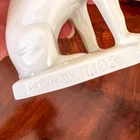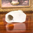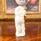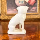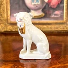 A cutie little white German Mantle Dog - He looks like a Bulldog, Pitbull or Staffie holding a gold gilded basket. Makes a great housewarming gift! Excellent condition - no chips, cracks or crazing. Measures: 3.5"H x 3" L x 1.5"W I ship within 2 business days - thanks for shopping!