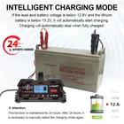 Car Battery Charger Smart 12V/24V Automatic Pluse Repair,Heavy Duty,0V charging Specifications: Mode : BC-200PRO,BC-250PRO Input Voltage : AC 100-130V 50/60HZ Output Voltage : DC 14.8V/29.6V ±0.3V Output Current : BC-200PRO -12V(5A 10A 20A) / 24V(5A 10A), BC-250PRO -12V(5A 10A 25A) / 24V(5A 10A 12A) Peak Power : BC-200PRO (300W), BC-250PRO (375W) Battery Capacity : BC-200PRO (15-150AH), BC-250PRO (15-250AH) Input Power Cord Length : 59in/150CM Output Power Cord Length : 39.4in/90CM One click repair : It has a good repair and activation effect on sulfurized batteries, undervoltage batteries, and longterm idle batteries. Zero Volt charging : When the battery voltage is 0V, the repair mode can be used to start charging. 12V/24V automatic recognition : The charger can support 12v/24v lead-acid batteries automatic identification, you can choose the current size. Hanging charging function : The battery drops off too quickly in winter, and the hang-charge escort ensures full energy the next day. What's included : 1 * Charger 1 * User Manual Multi-functional 1-1:Zero V charging When the battery voltage is 0V, the repair mode can be used to start charging. 1-2:One click repair It has a good repair and activation effect on sulfurized batteries, undervoltage batteries, and long-term idle batteries. 1-3:2V/24V automatic recognition The charger can support automatic recognition of 12v/24v lead-acid batteries and can choose the current size as needed. 1-4:Hanging charging function In winter, if the battery loses power too quickly, hang the charger to ensure full energy the next day. Municipal power access Connect the power plug to a 220V/110V mains power supply. : Lead acid battery charging:WET/MF/EFB/GEL/AM(12V/24V) Lead acid batteries will automatically detect the battery voltage and adapt to 12V or 24V. At this time, simply select your battery type and the charging current you want, and then press the power button to star t charging.When the batter y voltage drops below 12.8V (12V battery)/25.6V (24V battery) for 60 consecutive seconds, the charger will automatically start charging. : Lithium iron phosphate battery (12V) After connecting the battery to the charger, it will automatically detect the batter y voltage and adapt to 12V. At this time, just select your battery type and the charging current you want, and then press the on button to start charging. When the battery voltage drops below 13.2V for 60 consecutive seconds, the charger will automatically start charging. Payment Returns Contact About us Payment We use ebay official warehouse, we have received the Payment will be sent out immediately, Please check the shipping address before Payment. Due to ebay fulfillment, once the Payment is successful, ebay will fast and automatically refuse to cancel the order, we can't cancel it, but you can try to refuse the package. Returns Return is request, all returns must Include All Original Items Undamaged, in Re-saleable condition, all original packaging including manuals, warranty forms, Etc. Contact We offer a product with a 1 - year warranty. The customers’ enjoyable purchasing experience is rather important for us. If something goes wrong with your product, please do not hesitate to contact us for assistance. About us We are a company integrating industry and trade, with our own factory; we control the quality by ourselves and quantity can be supplied quickly.