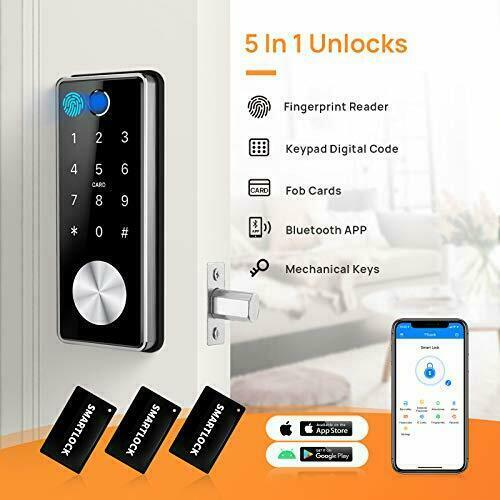 Smart Deadbolt Keyless Entry Door Lock 5 in 1 Fingerprint Bluetooth APP Key Fob Keypad Digital Door Lock Security Front Door Work with WiFi Gateway and Alexa for Home Office Garage by Holify (Silver) 🔒KEYLESS ENTRY DOOR LOCK: Unlock via Fingerprint , Bluetooth App, Anti-peep keypad code , Mechanical Keys ,RFID Cards. Connected with gateway to control remotely ,and voice control with Alexa (Gateway and Alexa all sold separately) 🔒NEED TWO HOLES: Installation requires the upper and lower door holes. Adjustable backset 2-3/8 '' or 2-3/4 '' ,fits door thickness of 1-3/8 ''to 2-3/8 ''.Premium metal quality ,which is made of zinc alloy and 304 stainless steel. 🔒CONVENIENT SMART LIFE: Share the Timed, Permanent, One-time or Customized passcode for others. Track unlock log anytime anywhere. Ideal for aluminum and wooden indoors door of home office garage Apartment and Airbnb . 🔒Power Way: 4 AA batteries provide unlock 5000 times (batteries not included) .Backlit keypad,low battery reminders ,and Emergency USB port (only used for emergency unlocking when the battery is dead ,it cannot be charged.) 🔒:30 days return service, 1 year and life-time tech support. Service and Tech support, please Holify Team, installation video search keyword "Holify B11T" on utube. Holify Keypad Deadbolt Lock �24-Hours Teh Support: Holifyliveoutlook.com �Installation Videos: search for keyword Holify B11t on utube. Material:304Stainless Steel ,Zinc Alloy Keypad Passcodes ▪Manually Locked Way:Press # on keypad for 5 seconds to lock. ▪Backlit keypad, easy to input passcodes whatever day or night. ▪Easy to program the Timed,Permanent, One-time or Customized pass code for others,great for commercial rentals. ▪Anti-peep Keypad Codes: Support input random digits before and after the actual code to prevent the password from being peeping. Specifications ▪Fits Door Thickness: 1.37'' to 2.36" (35 mm to 60mm) ▪Adjustable Deadbolt Basket: 2.36" or 2.76" (60 mm or 70 mm) ▪Upper Hole Diameter:5/8 inch (15mm) ▪Lower Hole Diameter: 2-1/8 inch(54 mm) ▪Max Distance between upper and lower holes: 2-11/16 inch(68mm) ▪Weatherproof Level: IP55 Level ,protected against splashing water, please avoid direct with extreme weather, which can damage the fingerprint sensor. ▪Application: Suit for both interior door ,and exterior door that with eave and shelter. Long Standby Time▪Power way: 4 AA batteries (not included) support to lock/unlock over 6,000 times (half a year).▪Emergency Micro-USB port:Only used for emergency connection when the batteries runs out.▪Note:Emergency port cannot be used to charge the lock or internal batteries.(USB cable not included) Shipping We offer FREE shipping on all orders! We ship within Three business days of payment, usually sooner. We use a selection of shipping services such as UPS, FedEx, USPS etc. We only ship to the lower 48 states, no APO/FPO addresses or PO Boxes allowed. Local pickups and combined shipping options are not provided at this time. Return You can return a product for up to 30 days from the date you purchased it. Any product you return must be in the same condition you received it and in the original packaging. Please keep the receipt. Payment We accept payment by any of the following methods: PayPal Please pay as soon as possible, as that will allow us to post your item to you sooner! Feedback Customer satisfaction is very important to us. If you have any problem with your order, please contact us and we will do our best to make you satisfied. Contact Us If you have any queries, please contact us via ebay. We usually respond within 24 hours on weekdays. Please visit our eBay store to check out other items for sale! Thank you for shopping at our store.