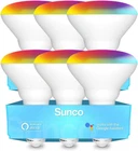 Top Rated BR30 LED WiFi (2.4 GHz) Smart Bulb, Color Changing (RGB & CCT), App (no hub required) & Voice Control ✅ REMOTE CONTROL - Enhance your smart home with Sunco's Smart BR30 Bulbs. Compatible with Amazon Alexa or Google Assistant for voice control to dim, turn on/off or change colors. Control bulbs individually or create different groups to control in unison. Great for 5” or 6" recessed cans. ✅ EASY TO USE APP - Control from your smartphone or tablet with the user-friendly Smart Life or TUYA apps. Note: Bluetooth, Location, and 2.4 GHz WiFi signal required for pairing. Not compatible with dimmer switches. Multiple bulbs must be paired one bulb at a time. ✅ CHANGE COLORS – Change colors via RGB rainbow color wheel or classic CCT (2700K-5000K) color temperatures. Bump up the beat and atmosphere with Music sync which changes color to the beat of your favorite song. ✅ SUNCO BENEFITS - 5-Year Warranty! Sunco is proudly based in the USA and upholds the highest standards for optimal performance and safety. Need help setting up your Smart bulbs or troubleshooting the Smart Life or TUYA app? Contact our knowledgeable specialists for further assistance. Not for sale in California. Product Description Music Sync Transform any setting into a pulsating dance floor, captivating concert, or relaxing retreat with light that moves with you. Intuitive Interface Control your lights anytime, anywhere using our convenient Sunco Smart Lighting app. Scheduled Timer Wake up to a gentle sunrise, get home to instant lighting, and create a cozy atmosphere before bed, all from your smartphone. Voice Control Ditch your switch & say ‘hello’ to handsfree lighting. Bright, dim, on, off — you control your lights without leaving the couch. Relax in Radiance Transform your space into a personal sanctuary. Embrace Productivity Create an environment optimized for work. Leveled Up Lighting Upgrade your gaming experience. 1 Relax in Radiance 2 Embrace Productivity 3 Leveled Up Lighting Similar Products Add to Cart Add to Cart Add to Cart Add to Cart Add to Cart Add to Cart Customer Reviews 4.1 out of 5 stars 1,408 4.5 out of 5 stars 136 4.5 out of 5 stars 1,110 4.5 out of 5 stars 1,100 4.5 out of 5 stars 758 4.5 out of 5 stars 672 Price $35.69 $ 35 . 69 $67.99 $ 67 . 99 $12.99 $ 12 . 99 $39.99 $ 39 . 99 $69.99 $ 69 . 99 $64.99 $ 64 . 99 Lumens 650 Lumens 850 Lumens 550 Lumens 1400 Lumens 965 Lumens 965 Lumens Wattage 8W 11W 7W 17W 13W 13W Equivalency 65W 65W 50W 100W 75W 75W Dimmable With App ✓ ✓ ✓ ✓ ✓ Moisture Rating Damp Rated Damp Rated Damp Rated Damp Rated Wet Rated Damp Rated Base Type E26 E26 E26 E26 E26 E26 Beam Angle (Degrees) 120° 110° 110° 110° 90° 90° Lifetime 25,000 hours 25,000 hours 25,000 hours 25,000 hours 50,000 hours 50,000 hours Smart Features ✓ - - - - -