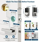 Specification: User Capacity: APP + 250 User Codes + 1000 Fobs Wrong Code Entry Limit: 5 times Backset: 2-3/8" or 2-3/4" (60 or 70mm) The hole in the door edge: 1" (25mm) Door Prep Size: 2-1/8" (54mm) Door Thickness: 1-3/8" to 2" (35 mm or 50mm) thick The hole in door frame is drilled: ≥1" (25mm) 4 AA batteries required - Not included Water Resistance Leve: IP54 Multiple Ways To Unlock: The smart door lock offers five different ways to unlock it: APP + Password + Fobs + Key + Thumb turn Lock Easy: Five Ways to lock the smart deadbolt: 5-900 seconds auto lock; Press and hold lock button in the App for 2 seconds; Press "#" on the kepad for 2 seconds; Physical key; Thumb turn APP Control & Ekeys: You can use your smartphone to control the electronic door lock, allowing you to remotely generate eKeys, manage users, and view records through both the free App and Website Remote Control: When paired with G2 gateway (sold separately), you can control digital door lock remotely, use voice commands with Alexa and Google Home, and monitor access logs and lock status in real-time Enhanced Security: The electronic deadbolt includes auto-lock, one-touch locking, privacy mode, and low battery alerts. It's equipped with an anti-peeping and anti-hacking touchscreen keypad, ensuring the security of your home Easy Installation: The keypad deadbolt fits most US standard left-handed and right-handed doors. It comes with at least one year warranty and lifetime online phone support on weekdays from nine AM to five PM PST, plus twenty four hours after-sales email service Note: Don't change the Master Password on the keypad before pairing with the app. Activate the door lock by touching the keypad before pairing. If the app can't find or connect to the lock, please reset the lock