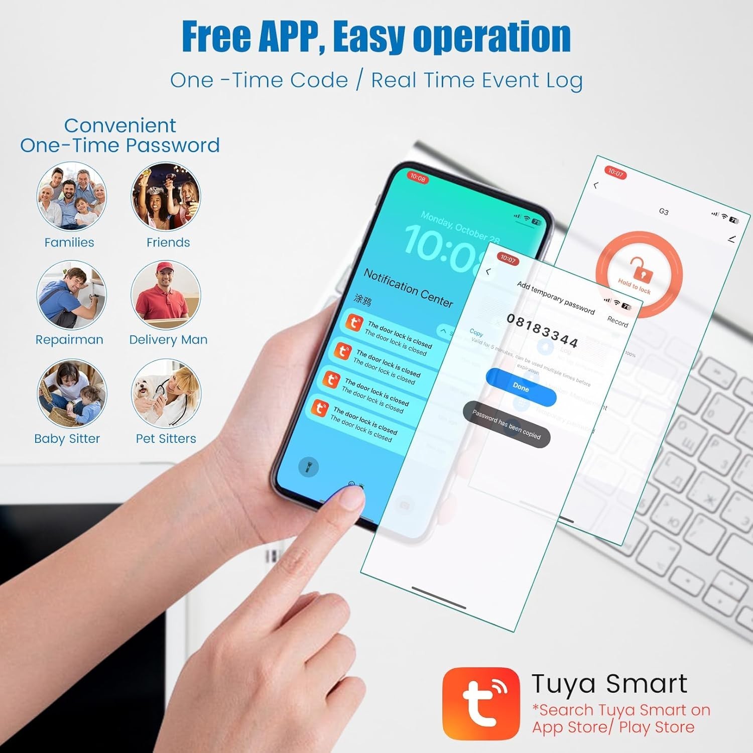 Description About this item AI Fingerprint Recognition-Protect your home effortlessly with the G3 WiFi front door smart lock. Our AI technology learns and recognizes your fingerprints more accurately with each use, identifying in 0.25 seconds and unlocking in 0.5 seconds. Store up to 100 unique fingerprints for ultimate convenience. Control from Anywhere & Smart Management-The G3 features built-in WiFi connectivity,no bridge required, Via the Tuya Security app. You can remotely unlock, manage access permissions, view event logs, and quickly generate one-time passwords from anywhere. Perfect for granting temporary access to pet sitters while you're away on vacation, enhancing convenience while maintaining security. 5-in-1 G3 Smart Front Door Lock- Multiple entry methods including app control, password, fingerprint, IC card, and physical key. Compatible with Alexa/Google Home, making this electronic deadbolt lock ideal for modern homes. Security and Durability-The G3 smart digital combination door lock have a low battery alerts and incorrect entry restrictions funtions.G3 Wi-Fi smart deadbolt features a sleek morden design with rubber gaskets serving as moisture barriers, complementing most front doors seamlessly. IP54 waterproof, this keyless entry lock withstands extreme temperatures from 5°F to 122°F.Powered by 8 AA batteries (not included), the WiFi door lock operates for approximately 8 months. Auto Lock & Easy Installation-Equipped with intelligent auto-lock and one-touch lock functions, you can customize lock timing from 5-900 seconds. The door automatically locks after closing, completely eliminating concerns about forgetting to lock up. Shipping 1 . We Ship to United States ONLY. 2 . Ship from two warehouses and only to eBay ADDRESS. Package handling only takes 1 business day at our warehouse, so please make sure entering correct payment and shipping information before checking out. Once your payment is completed, pls leave ebay note if the changes are needed before we send the product. 3 . Truck company: 3-8 business days. | USPS: 2-6 business days. | UPS/FEDEX: 3-5 business days. Warranty and Guarantee 1 . All of our items come with a 30-day return policy. We ensure all our items are new and in excellent condition prior to shipping. In the event that you receive the item that is not to the standards above, please contact us via e-Bay messages. All returns must be in new original condition as received and should be shipped with delivery confirmation 2 . We ONLY accept the return for original package. Please make sure that item has NO man-made sabotage. Used items will not be accepted for return. 3 . We reserve the right to refuse any returns for objective reasons. 4 . All NON-seller mistake returns for refund are subject to 20% re-stocking fee and buyer should pay for the round-trip shipping fee. (E.g. you bought wrong model or wrong color). Feadback 1 .Any problem after receiving our goods,please contact us before leaving Neutral/Negative feedback.We promise to help you solve it asap,and make you feel satisfactory absolutely. 2 . Please DO NOT leave negative feedback without asking for help. Please do not leave negative or neutral feedback if you haven't received item in 30 days, because we have mentioned the shipping time repeatedly.