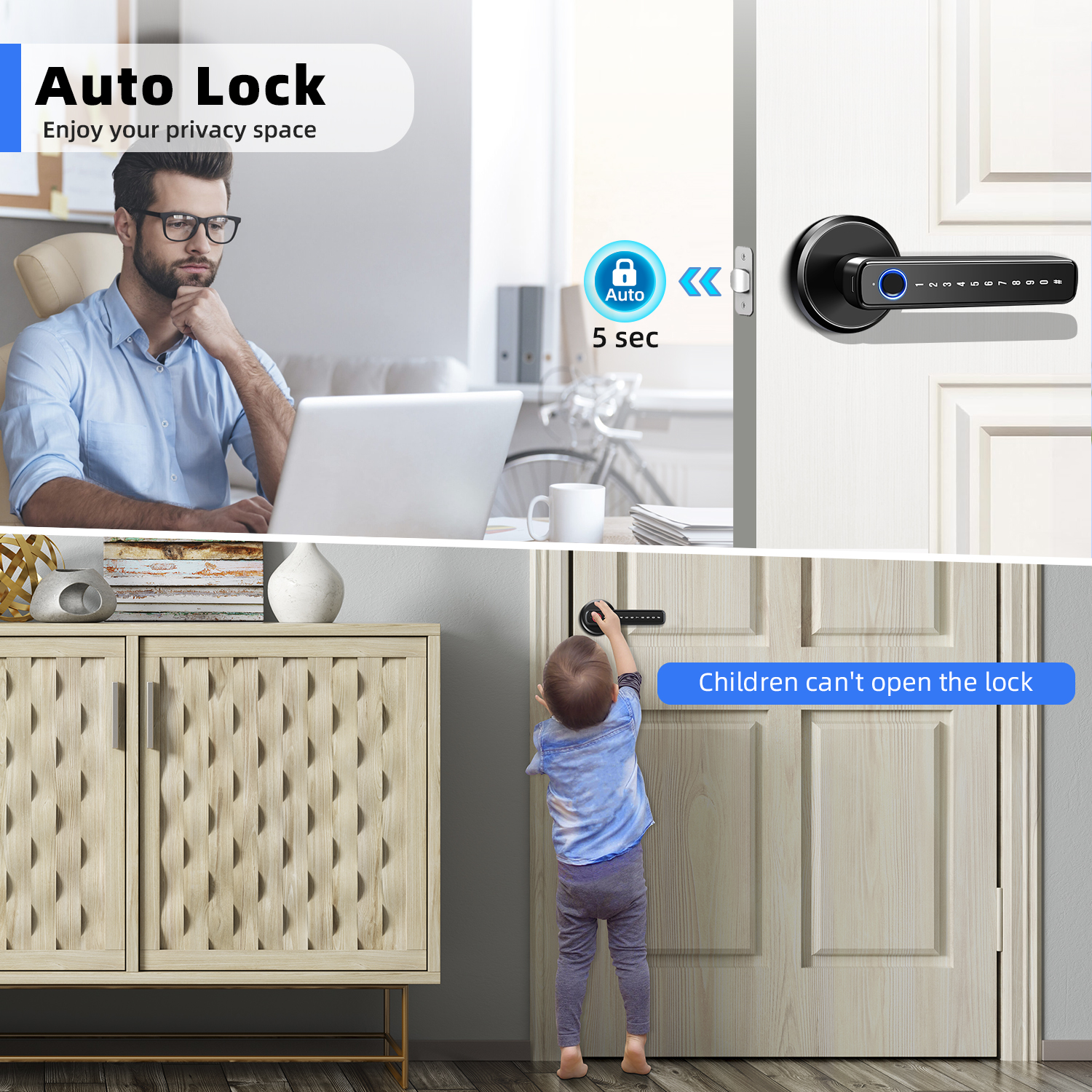 Upgrading to this smart lock was a game-changer—keyless convenience without sacrificing security! The fingerprint scanner is lightning-fast, the app lets me manage access remotely, and backup options like codes and keys ensure I never get locked out. Installation was a breeze, and it looks sleek on my door. Perfect blend of modern tech and classic design—highly recommend for hassle-free entry!