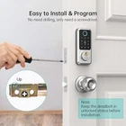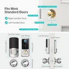 For sale, a convenient smart door lock with a handle that eliminates the need for keys by using biometric fingerprint technology. It unlocks in less than 2 seconds and can store up to 50 fingerprints. This 8-in-1 keyless entry system includes options like a keypad, smartphone app, fob, and even voice control via Alexa, ensuring easy access and security for your home. You can create temporary codes for guests, manage access with ease, and set the auto-lock feature for peace of mind. Installation is simple with a screwdriver, and it's designed to fit most standard wooden doors without additional drilling. The lock also notifies you when the battery is low and allows for emergency charging with a Type-C cable. Say goodbye to the hassle of managing keys and upgrade to this smart lock for a more secure and convenient lifestyle.