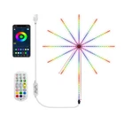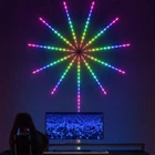 Features: 【 Home decoration 】 Room decoration fireworks lights, TV background, game room and other atmosphere decoration lights, bar lights show different color display with the sound or rhythm of music 【 APP Remote 】 Firework lights can be controlled by APP or infrared remote control. There are a variety of lighting modes and color-changing modes, a variety of timer functions, music modes, and voice control modes on the APP for you to choose from 【96/ 156 Led 】 The product includes 10*11.8/19.68inch light strings and 1* 39/59 inch light string, which supports 24-key infrared remote control, allowing you to enjoy the fun of color changing in bedroom, kitchen, living room, bar and party decoration. You can adjust brightness and lighting modes according to different atmospheres 【 Easy to install 】 Strong adhesive on the back makes the light bar easy to fix, suitable for all interior walls 【 Wide Applications 】 Perfect for Christmas, Halloween, Party, Wedding, Holiday and Home Decor. Also great as a gift for your friends and family Specification: Material: ABS Lamp Type: 5050 Number of lamp beads: 96/156LED Light color: Symphony RGB Function: APP mode/timing/music mode/voice control mode Beam angle: 120 degrees Waterproof grade: not waterproof IP20 Input voltage: 5V Power: 1.5W/1M Single lamp bead lumens: 20 lm Light string length A: 1x150CM+10x50CM Light string length B: 1x100CM+10x30CM Packaging includes: 1/2/3/4/5/6x Firework Lights Set 1/2/3/4/5/6 x Remote control (include battery) 1/2/3/4/5/6 x USB adapter (no plug) 1/2/3/4/5/6 x Manual