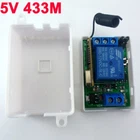 Compatiable transmitter remote : https://stores.ebay.com/RF-Wireless-Electronics-Technology/Fixed-Code-Transmitters-/_i.html?_fsub=5534337015&_sid=1103009655&_trksid=p4634.c0.m322 . Packing list: 4 PCS 433M DC 5V 1 Channel Delay Relay Board 1 PCS 433M 4 Key EV1527 Remote Control ( USE 12V 27A battery,Batteries not included ) receiver Features: Typical applications: DC 5V Home lighting system Remote control switch Smart Home / Home Automation Garage Door Fluorescent lamp Illumination Motorcycle Electromobile Remote controlled gates Security Monitoring LED lighting Fluorescent lamp DC 12 DC Motor,RS360 Typical applications: DC 5V Home lighting system Remote control switch Smart Home / Home Automation Garage Door Fluorescent lamp Illumination Motorcycle Electromobile Remote controlled gates Security Monitoring LED lighting Fluorescent lamp DC 5 DC Motor,RS360 Wiring Diagram 1: DC 5V control circuit,Wiring diagram below. "LOAD" may be LED lamp, fans, motors and other DC 5V Electrical equipment Wiring Diagram 2: DC 1-48V OR AC 85-265V control circuit,Wiring diagram below(Note:If not DC 5V load, need another DC 5V power supply). "LOAD" may be LED lamp, fans, motors and other DC AC equipment Product Name : 5V Delay remote control relay Smart Home Kit 433M Multifunction ON/OFF Switch with Timing Non-locking Self-locking Inter-locking Packing list: 1 PCS 433M DC 5V one Channel Delay Switch receiver Features: 1 Operating voltage: DC 5V; 2 Operating Current: relays close, about 11MA; relay open,about 80MA; 3 Operating frequency: 433.92M; 4 Receiver sensitivity : -108dBm 5 Decode : learning code, can be adapted EV1527 / PT2262 and compatible remote control, you can store up to 32 remote control 6 Work mode : Non-locking (Momentary is defult),Self-locking (Toggle),Inter-locking (Latch),Delay ; 1-5000 seconds adjustable delay time , minimum step 0.1 seconds 7 Size(Including housing)50*35*22mm 8 Weight(including housing) 30g 9 Relay Maximum load(Recommended<5A):10A/250VAC,10A/125VAC,10A/30VDC, 10A/28VDC,10A/12VDC Work mode NO : Relay normally open contact COM : Relay common contact NC : Relay normally closed contact Open : NO connection COM, NC disconnect COM Close : NO disconnect COM, NC connection COM Momentary : Press the Transmitter button , the receiver relay is Open, release button;the relay is Close; Toggle : Press transmitter button for 1 time , the receiver relay is Open, press button again, the relay is Close; Latched : Press transmitter button A, the receiver relay is Open Press transmitter button B, the receiver relay is Close. Delay : Press the Transmitter button, the receiver relay Open,After a set time delay, the receiver relay is Close; If during the delay, press the button of Transmitter, delay start again; if the delay period, press and hold the button of Transmitter 3-4 seconds, the receiver controller stops the delay, the relay Close Adapter remote control (learning remote control): Under normal operating mode, LED will be lit, when receives a valid remote control (EV1527 / PT2262) button values, LED flashes Clean code: press the key and held down, LED off, LED will light about 8 seconds later, clean code is completed (Note: After performing clean code previously stored remote control value does not exist) Step 1 (into the learning mode): Press the key (about 1 second), LED off; Step 2 (adapter button): Then press the utton on the remote control, LED flashes four times on, then learning the button value Note: Only the Non-locking (Momentary is defult),Self-locking (Toggle),Inter-locking (Latch) mode to a "clear code" and " learning " action In the "delay" mode can only set the delay time Delay setting: Step 1, the mode is set to "delay" mode (jumper cap on the M1 into two rows of pins) Step 2, press the key until the LED is off Step 3. Click the key again, LED flashes Step 4. Click the key again after a period of time, LED light LED blinking time is the delay time. Power supply : 12V 27A battery replacable . (This remote doesnot have a battery , Please buy in your local market ) Operating current: ≤ 12mA ; Oscillation mode: SAW resonator ; Oscillation resistor : 330K Modulation mode: ASK OOK ; Operating frequency: 433.92MHz ; Frequency dev iation: ±0.2MHz ; Encoding format: Million Group Code ( EV1527 ) ; Transmit power: 10 mW. Data Rate : 50~60KHZ;