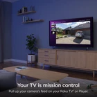 Get a view of the great outdoors—or at least the outside of your home—with Roku Outdoor Camera SE. This wireless, long-range camera can be set up in the driveway, backyard, by the pool, or anywhere you want a view of the action. Roku Outdoor Camera SE is ultra-durable, weather-resistant, and battery-powered with up to six months of charge for a wire-free setup. Stream right to your Roku TV™ or Player or Roku Smart Home mobile app in detailed, HD video—day or night. Crisp, two-way audio even lets you ward off intruders (human and animal), greet the delivery person, or yell “Get back here!” to your teen sneaking out. Bring on the weather—with IP65 weather resistance, your outdoor security cam can withstand any climate. Pull up a live feed, adjust your settings, and more right in the Roku Smart Home mobile app. Easy, guided instructions in the app make setting up your outdoor security camera a snap—set up anywhere you can connect to your home Wi-FI®. High-definition video: See an entire area with sharp 1080p HD picture—even at night—right in the Roku Smart Home Mobile app. Built for any climate: Bring on the rain, snow, and sun. With IP65-rated weather resistance, this outdoor camera is fit for any climate. Smart motion & sound detection: Get an alert within seconds of your camera detecting motion or sound. Smart sensors detect body heat, so you don’t get false alerts for trees swaying in the wind. Watch on your TV: No, no—don’t get up. Pull up your camera’s feed on your Roku TV™ or Player by simply pressing a button on your remote or using Roku Voice. Control from anywhere: View a live stream, talk to a visitor, adjust the motion detection zones, and more—all from the Roku Smart Home mobile app. Color night vision: No more shadowy figures. See dark areas in 1080p full color with a low-light amplifier that captures twice as much light. Two-way audio: Greet guests, shoo raccoons away from your trash, or give intruders a very stern warning. Built-in siren: Scare away unwanted visitors with an 80db siren—that’s about as loud as a monster truck in your yard. Customizable detection zones: Set specific detection areas for your camera so you don’t get alerts about what’s going on in your neighbor’s yard. More features are waiting: A Roku Smart Home Subscription unlocks 14-day cloud storage to review recordings, plus smart detection to identify person, pet, package, or car. 2.4GHz Wi-Fi® required.