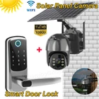 S olar Camera Product features : --Ultra low power consump tion, long time standby, intelligent power saving technology, pure battery, more than 180 days standby time. --With solar charging function, no need to worry about the power supply issue, you don't even have to charge it once a year, super suitable and convenient for Battery Camera Can Be Charged Via USB Cable *Please charge the security camera via DC5V 2A power, if use higher power, the power would damage the security camera. Pan Tilt 360° Monitoring *PT Remote Control On The Phone *You can easily control the PT camera to rotate 355° horizontally and 90° vertically to cover every angle of your house. * Just with only a mobile phone, you can Remotely monitor the whole front door or store via this CCTV camera. 1080P HD Resolution --1080P resolutions can let you get more clearer picture and video, and more details. Two Way Audio & APP Live Viewing You will get a camera with true sound reproduction in order to record important sound evidence. Built-in Microphone & speaker, which allows you to talk with the visitors freely everywhere . Color Night Vision --Equipped with 6pcs IR-Cut led lights, up to 30 meters night vision distance, so that you can get high quality video even at night. --The smart IR-Cut filter switches automatically between day and night. -- This outdoor camera supports color night vision function. Show you a more real night with color. PIR Motion Detection Security Camera *This Wireless solar Camera has built-in PIR motion detection feature. You can set the motion detection sensitivity based on your need. *Only Detect the Bodys, like human and animals, more accurate Working Environment *IP66 waterproof level *Can withstand the challenge of -20-50 ℃ *Durable, high safety performance Cloud/SD Storage * Cloud Storage Support * SD card storage up to 128gb (not include ) Remote access * No matter where you are, you can remotely access your monitoring camera Perfect For Place Without Wire And Power *This Wireless solar Camera has built-in PIR motion detection feature. You can set the motion detection sensitivity based on your need. *Only Detect the Bodys, like human and animals, more accurate specification : Video format: MP4 Video lens: 4mm F2.0 low light; wide viewing angle 120 degrees; 4x digital zoom Video night vision: 6 array infrared LEDs, night vision distance 30m. Full color day/night Audio input/output: built-in MIC and speaker, support two-way intercom PIR motion detection: support up to 12 meters PIR detection range Alarm linkage: alarm recording to Micro SD card; alarm mobile phone message push Memory Card: Maximum support 128G micro SD card (not include ) . Support cloud storage Video playback: Support App to play and download videos remotely Solar panel: 6W monocrystalline silicon solar panel Battery: Built-in 3 18650 batteries, the total capacity is up to 9600mAh Wake-up method: PIR motion detection wake-up, remote App wake-up Rotation angle: horizontal translation: 0°~355°, vertical tilt: 0°~120° Rotation speed: Horizontal speed: 10°~30°/S; Vertical speed: 8°~25°/S Power input: DC5V 2A Shell material: ABS fireproof plastic material, anti-vandal, waterproof grade IP65 Power cord: Type-c interface, extension cord 3 meters Product size: 22.3cm×17cm×23cm (length×width×height) Packing list: 1 x Camera with 2 antenna 1 x solar panel 1 x bracket 1 x USB cable 1 x User manual 1 x Accesorries ==================================================================================== Smart Door Lock Feature: 【Smart & Secure Door Locks】The keyless smart lock with handl e fit for 1-5/16'' ~ 2'' (33mm-50mm)thick door. Reversible handle lock is suitable for both left-handed & right-handed. Totally you can manage 200 of user code, built-in auto-backlit Touchpad. I deal new home gifts for the home! 【5-in-1 Unlocking Method】Unlock Hbodier smart door lock with your fingerprint, card, passcode, backup key, security APP. Multiple fingerprints can be set through the APP, bringing you a fast & best secure recognition system. You don't worry about forgetting to bring the key/smartphone. Accurate and extremely responsive unlocking response works perfectly for kids and the elder. 【Guard Your Family Safe】Security with the electronic door lock is much higher than other locks, the automatic door locks could be locked automatically within 5-120s. No worries about forgetting to lock your door ever since. Set the one-time or Customized passcode for guests, visitors, or other people. When entering the password incorrectly more than 5 times, the deadbolt lock will lock for 5 minutes and the admin could track all unlock records by phone in real-time. 【Easy Installation】Detailed installation instructions are included with the package. Even if you don't know anything about the installation principle, just follow each step in the manual to install, and you can get a perfect smart door lock. All installation steps require no additional drills or holes, just a normal screwdriver and the tools included in the package to complete the installation 【Worthy Customer Service Warranty】Our Smart lock App is free to use. No hidden charges or long-term costs. 30-day money-back guarantee, 1-year product warranty, and lifetime customer support following the date of purchase. › See more product details Note: Products with electrical plugs are designed for use in the US. Outlets and voltage differ internationally and this product may require an adapter or converter for use in your destination. Please check compatibility before purchasing. Our security smart lock special design----Safety Anti-peeing Code will increase your security level- only the user can read and unlock the lock. 5 Ways to Key-Free Access To Your Home 9 9.9% Read Fingerprint Identification HBODIER groundbreaking smart lock correctly recognizes registered fingerprint up to 99% of the time when placed correctly on the scanner. and opens your smart deadbolt in 