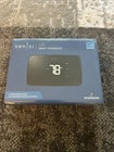 The Sensi Lite Smart Thermostat by Emerson is a brand new, programmable thermostat with a mobile app. It is compatible with various heating and cooling systems, including heat pumps and packaged/rooftop air conditioners. The thermostat is Wi-Fi enabled and can be controlled through voice commands, touch, or the mobile app. It features a 2.36-inch display, adjustable thermostat, and geofencing. The thermostat is black and wall-mounted, with a rectangular shape. It is compatible with Google Home/Assistant, Amazon Alexa, and Samsung SmartThings. The Sensi Lite Smart Thermostat is a wireless, energy-efficient device with a low battery indicator and filter replacement indicator. All sales are final. No returns. No exceptions