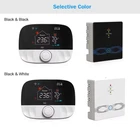 Enhance your home's heating, cooling, and air system with this smart home thermostat wifi controller. Designed with temperature sensor technology and line voltage, this programmable thermostat is perfect for maintaining an efficient and comfortable environment. Its round shape, white color, and 220V-240V voltage range make it a versatile addition to any home. This thermostat controller is battery-powered and compatible with 230V AC outlets. It is ideal for controlling your heating and cooling system remotely and can be easily integrated with your home Wi-Fi network. Whether you're looking to upgrade your home's climate control or simply want to enjoy a comfortable and efficient living space, this smart home thermostat wifi controller is an excellent choice.