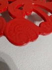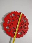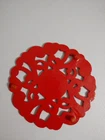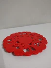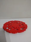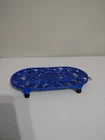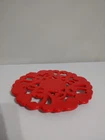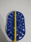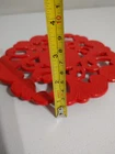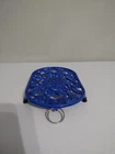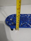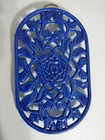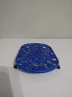 Smart Home Cobalt Blue Oval Cast Iron Trivet & Red Enamel Circle Cast Iron Trivet. Very small chip in paint on red trivet. Please see photos for measurements & condition. Thank you.