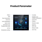 HIGHLIGHT APP ControlSmart thermostat that can be controlled by your phone before you come back home. (APP: Tuya) Voice ControlFor Yandex Alice,Amazon Alexa,Google home Ultra Narrow Frame Touchable ScreenNewest ultra narrow frame touchable screen design,perfect combine sense of technology and fashion aesthetics. Weather Station Functionthermostat have add weather station function display on the screen,including temperature,humidity and PM 2.5. Manual/ Auto ModeFree to choose manual mode or auto mode for different purposes. Two temperature displayCelsius and Fahrenheit Weekly ProgrammableThe thermostat supports different temperature setting accordingly with 6 time-modes daily. Memory FunctionNo need to worry about power failure, data memory when power is off. Children LockKeypad locking function is designed to prevent children from operating by mistake. Multiple languages 9 kinds of system languages,Chinese, English, ltaliano, , French, polski, Español, German, Czech. Holiday mode Automatically turn on the holiday mode,Saving energy and convenient. 3A Use Suitable for Gas Boiler Hot Water Heating. 16A Suitable for Electric Heating. SPECIFICATION Type: Wi-Fi smart thermostat Display:Ultra Narrow Frame Touchable Screen Weather Station Function:Temperature,humidity and PM 2.5. Material:anti-flammable PC Voltage:110-250V AC,50/60HZ Max. Current Load: 3A/16A Temperature Accuracy: 1 Temperature Setting: 5-95 Packing list 1 x Thermostat 2 x Screws 1 x Manual